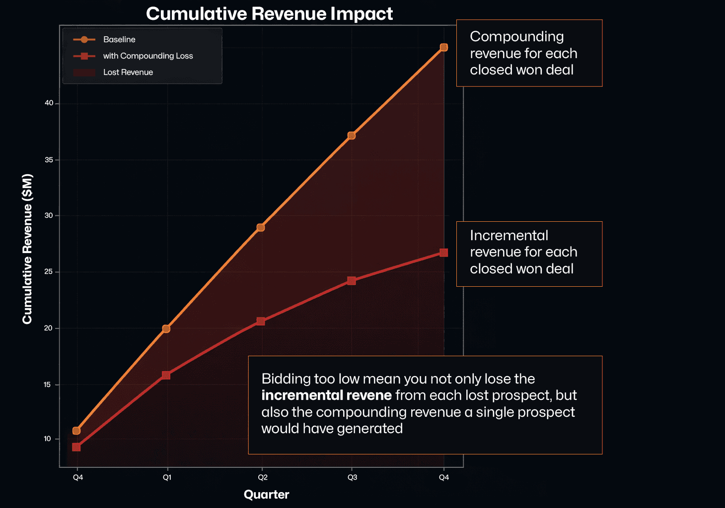 This creates a compounding disadvantage. Every prospect your competitor wins today represents years of lost revenue, reduced market share, and a stronger competitive moat you'll have to overcome later.