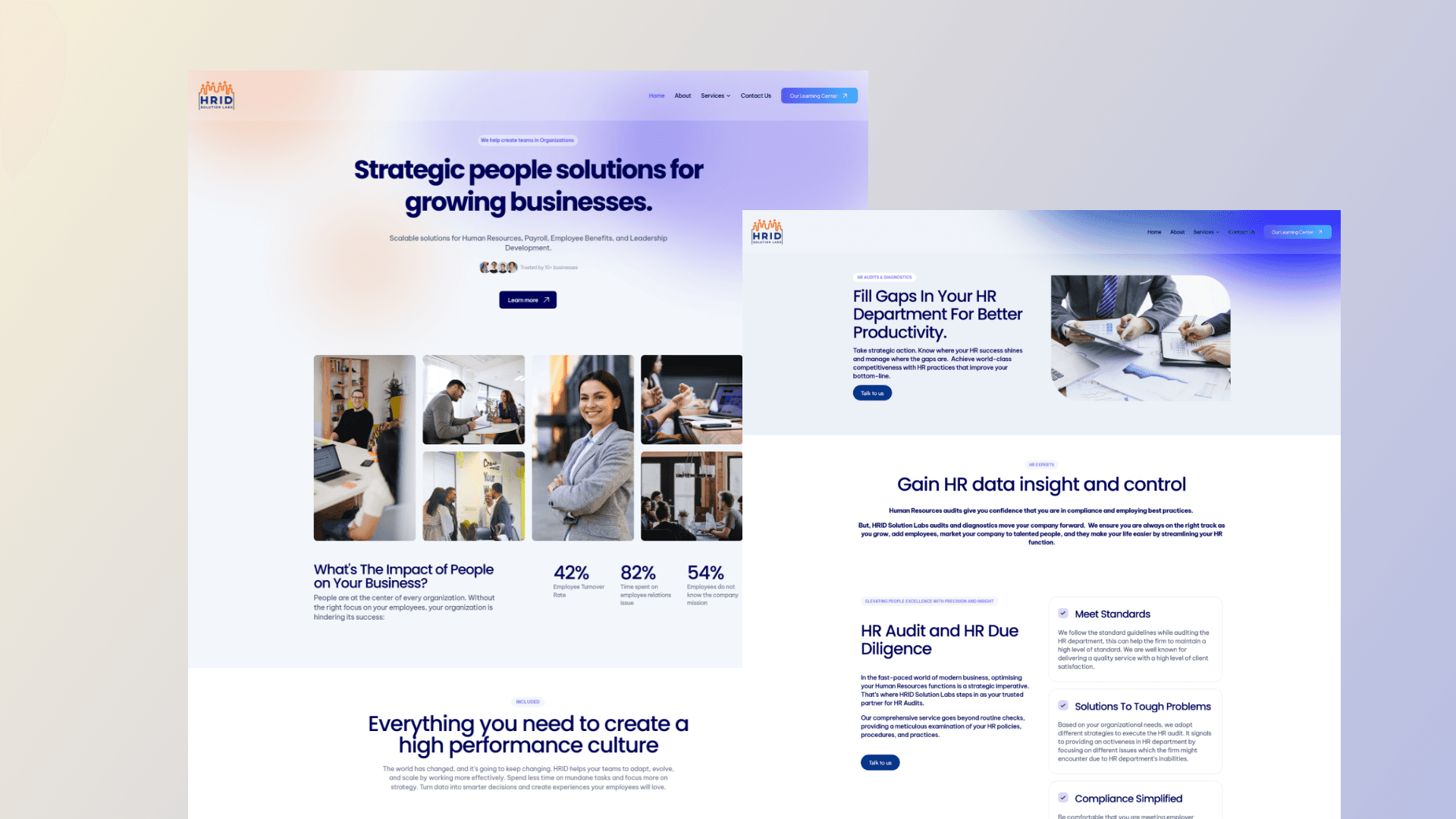 HRID Solution Labs being a relative new entrant (~9 months old), they faced the challenge of establishing credibility and visibility in a competitive market. Without an existing website, they needed a digital platform that not only introduced their services but also conveyed their modern and impactful approach to HR consultancy.