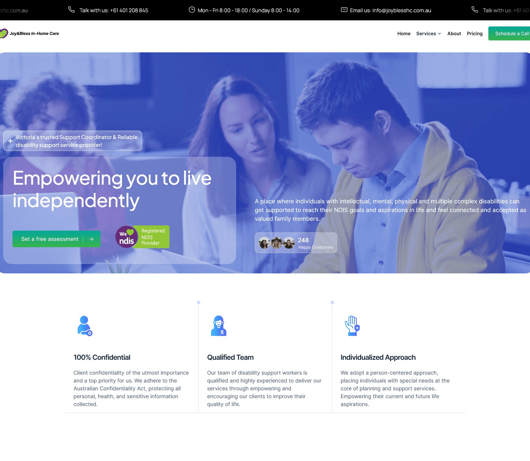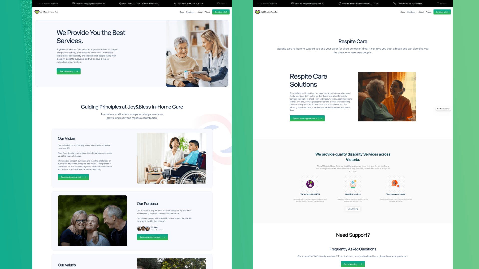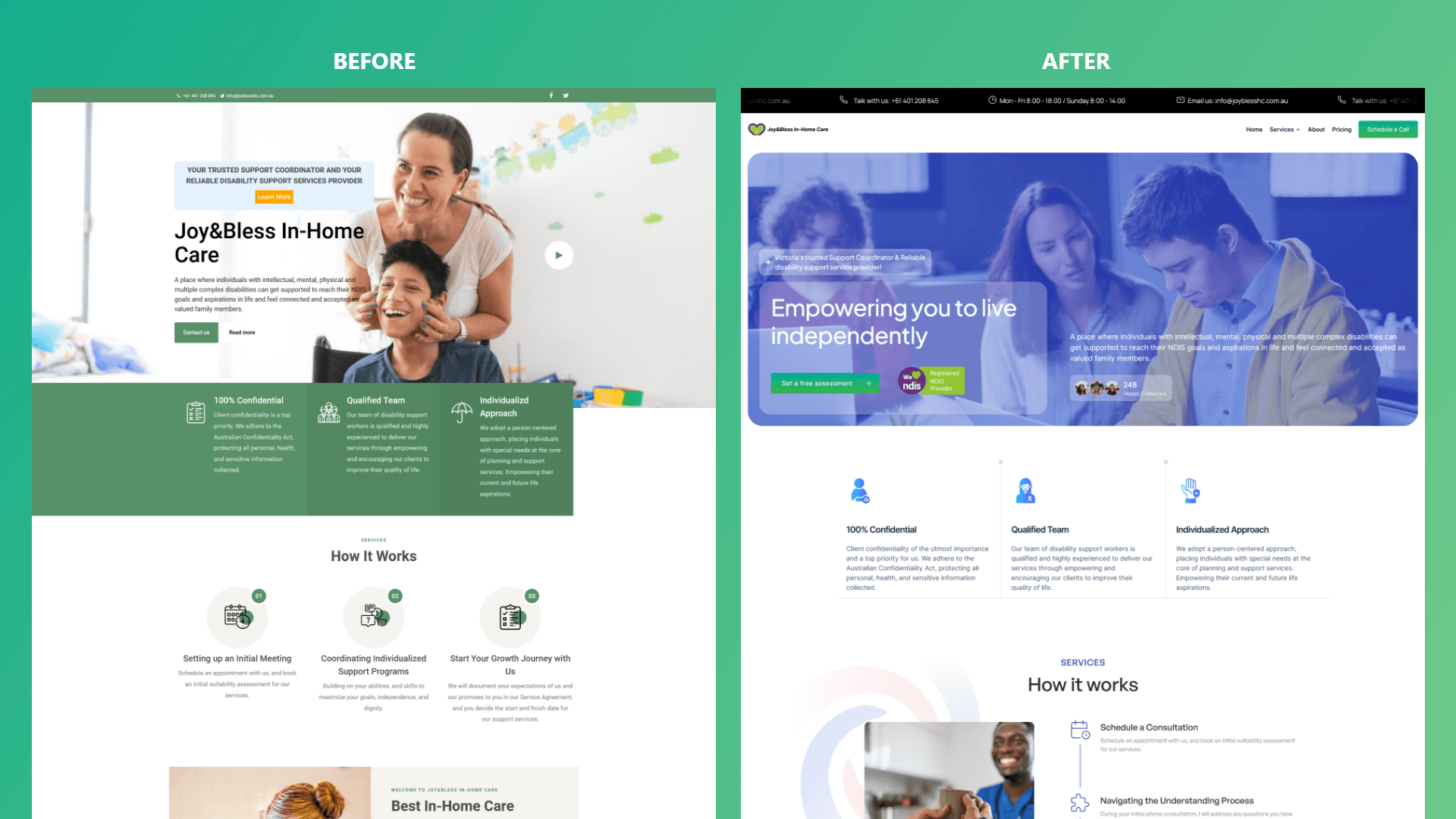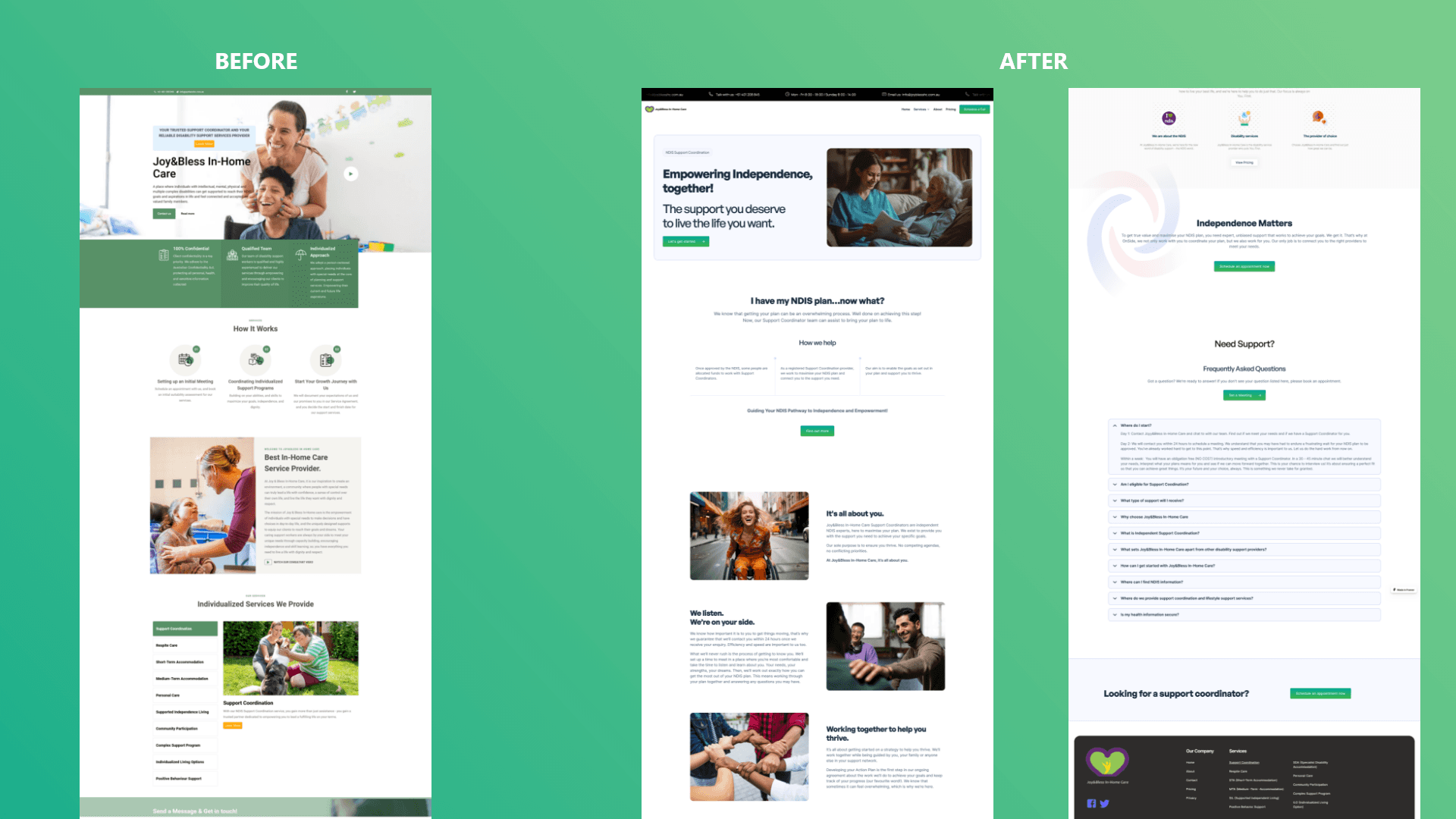 Navigating the NDIS Journey: The site required an intuitive structure to educate users about JoyBless’s services and the step-by-step process of accessing care.
